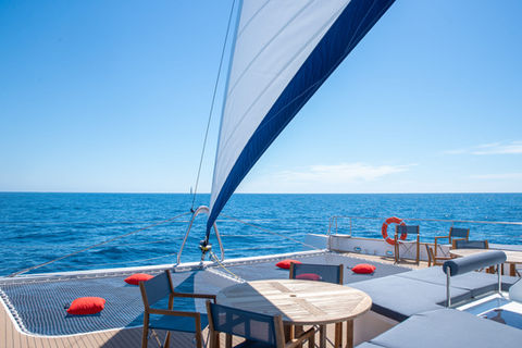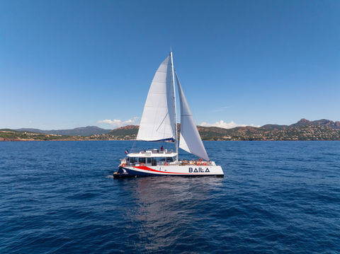 Baïla, a 22-meter premium maxi-catamaran, sails under the French flag and can accommodate up to 146 passengers.
